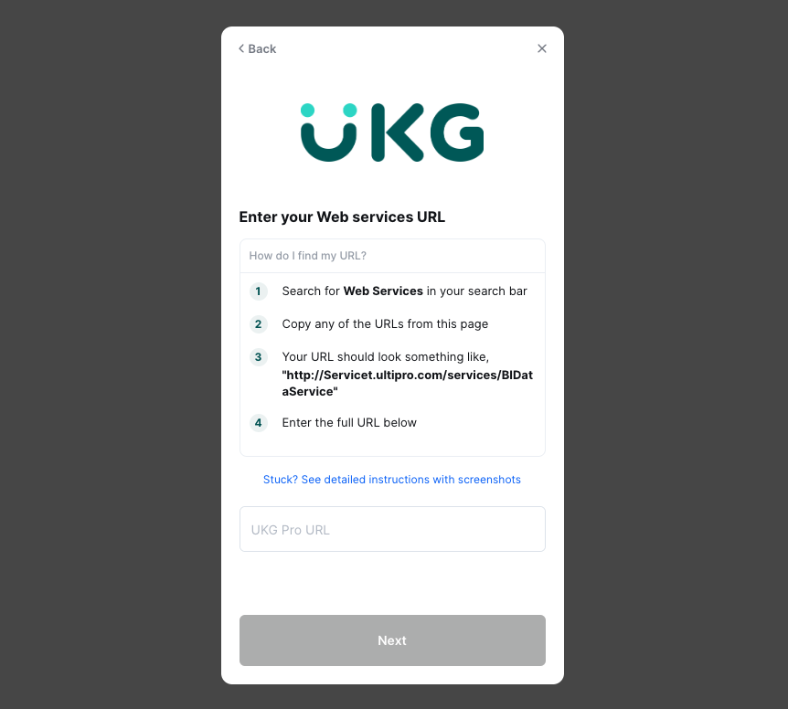 Go back to Compt and enter your UKG Pro service account credentials and click Submit.