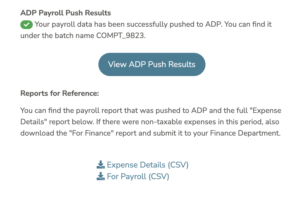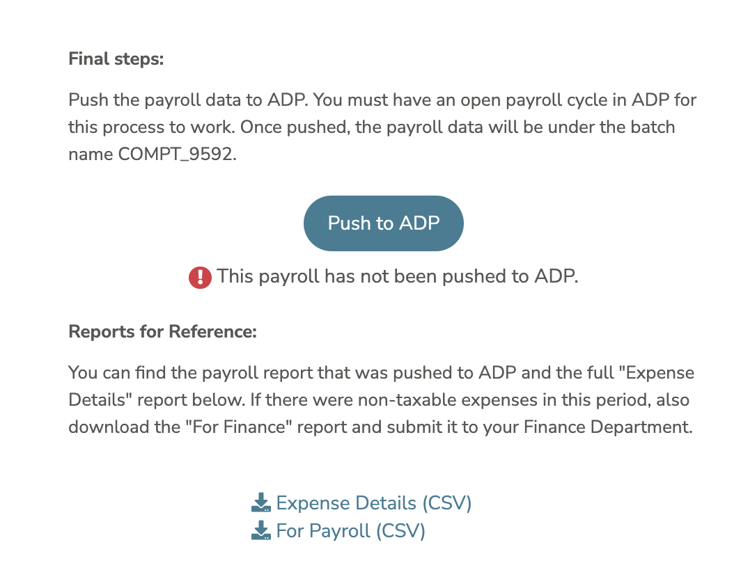 After running payroll in Compt, you can push pay data to ADP.